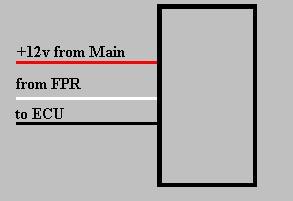 There are 3 wires. Connect the Red wire to +12v, connect the White wire to the Fuel Pump Relay coil, and connect the Black wire to the MS / uS FPR pin.
